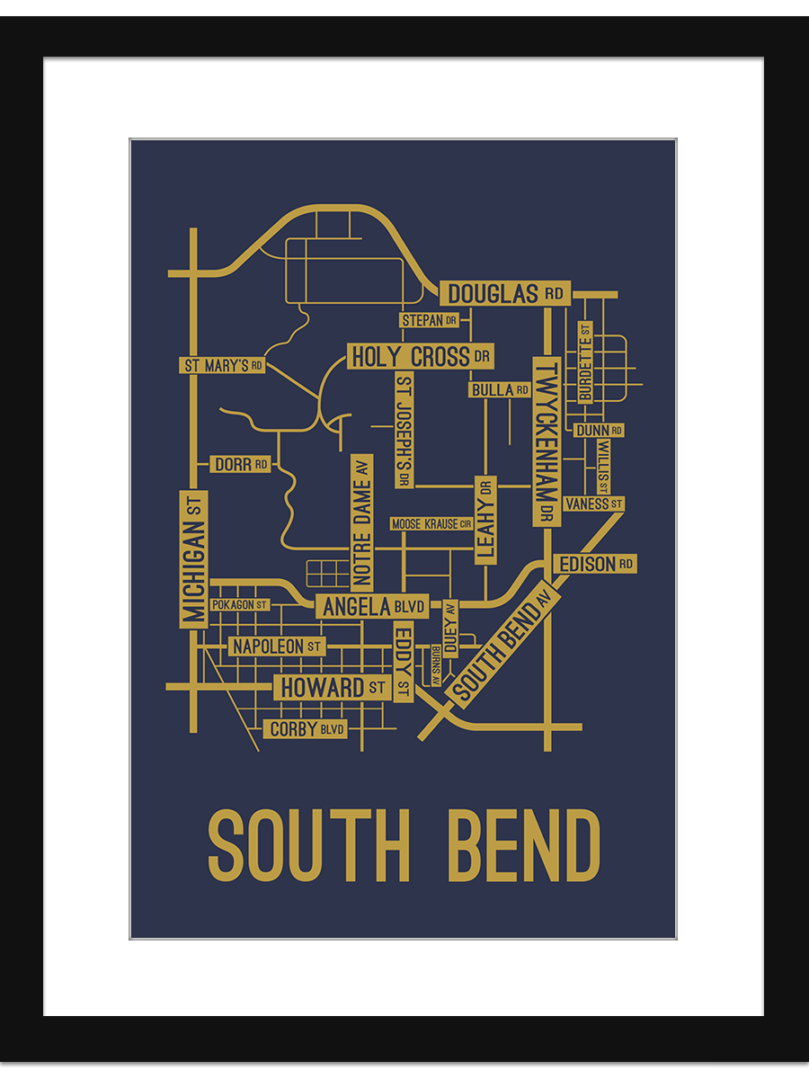 South Bend, Indiana Street Map Print School Street Posters