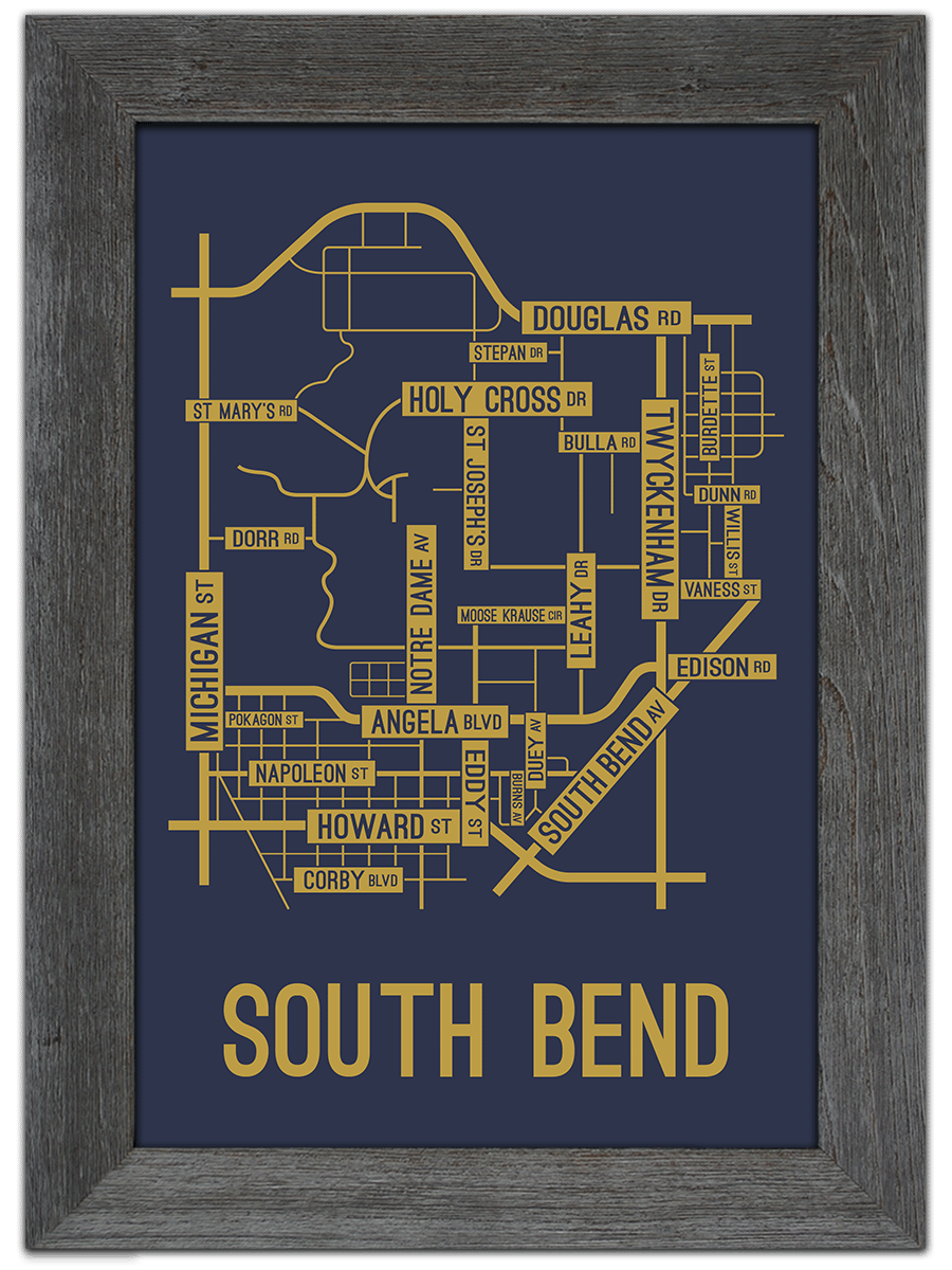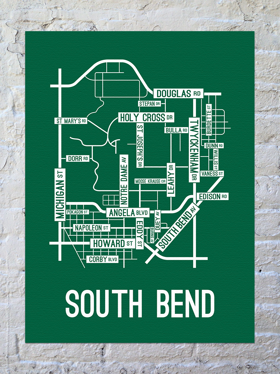South Bend, Indiana Street Map Canvas School Street Posters
